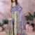 This striking aqua blue linen shimmer saree features bold, multicolor floral prints and a contrasting lavender border. Its lightweight feel and elegant design make it perfect for festive and traditional events.
