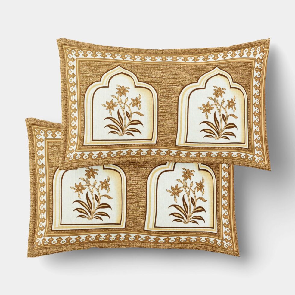 Enhance your bedroom décor with this Jaipuri Cotton Printed Double Bedsheet. Crafted from 100% pure cotton, it offers softness, breathability, and elegant traditional prints for a comfortable and stylish look. Comes with two matching pillow covers.