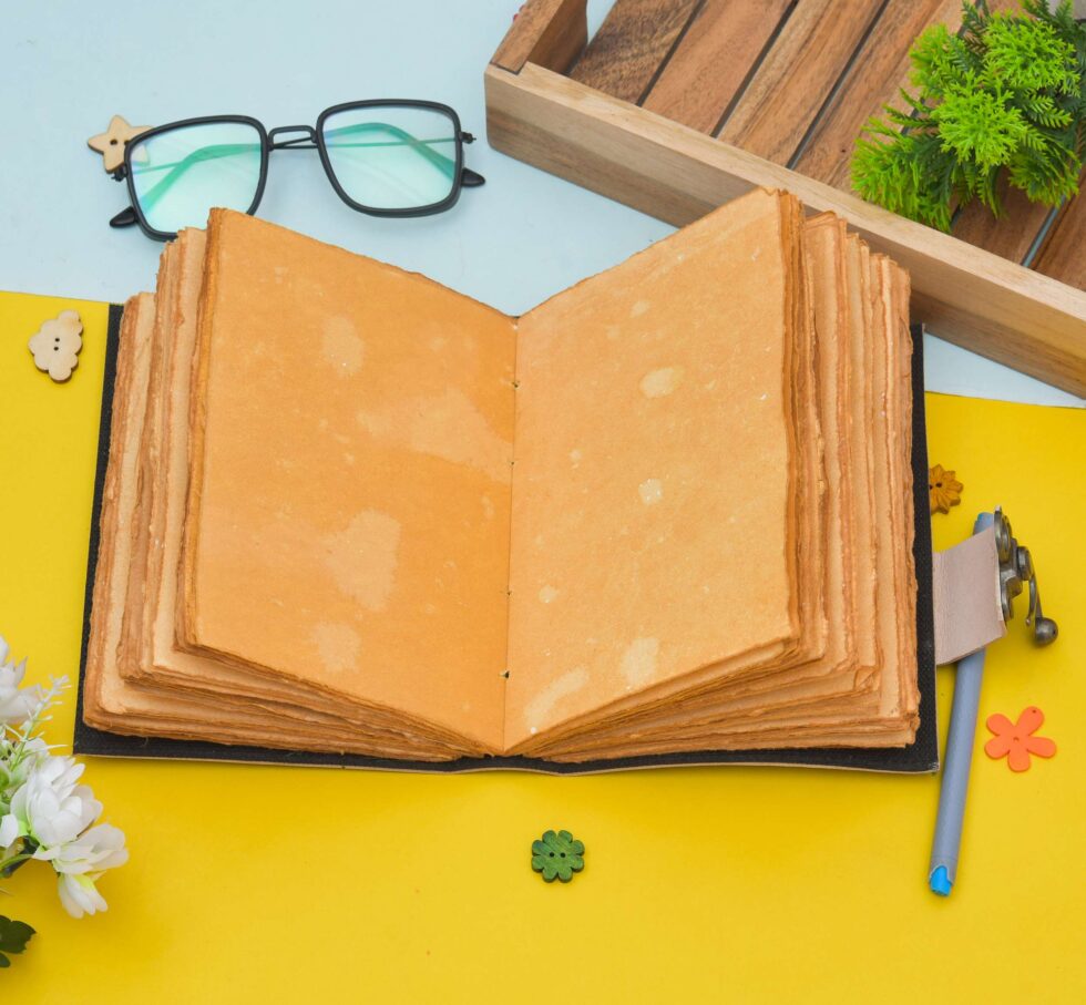 vintage handmade leather journal. Crafted with genuine leather, it radiates authenticity and charm, perfect for those who appreciate classic craftsmanship. The premium antique lock closure adds a touch of elegance and security, ensuring your thoughts and memories are safeguarded within its pages. Inside, you’ll discover 200 brown handmade pages, providing ample space for your musings, sketches, and stories to unfold. Whether it’s for journaling, sketching, or planning, this versatile journal is a timeless companion for your creative endeavors. Treat yourself or a loved one to this exquisite piece, a celebration of tradition and creativity