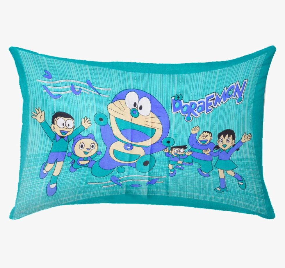 Doraemon Printed Cotton Double Bed Bedsheet With 2 Pillow Covers For Kids