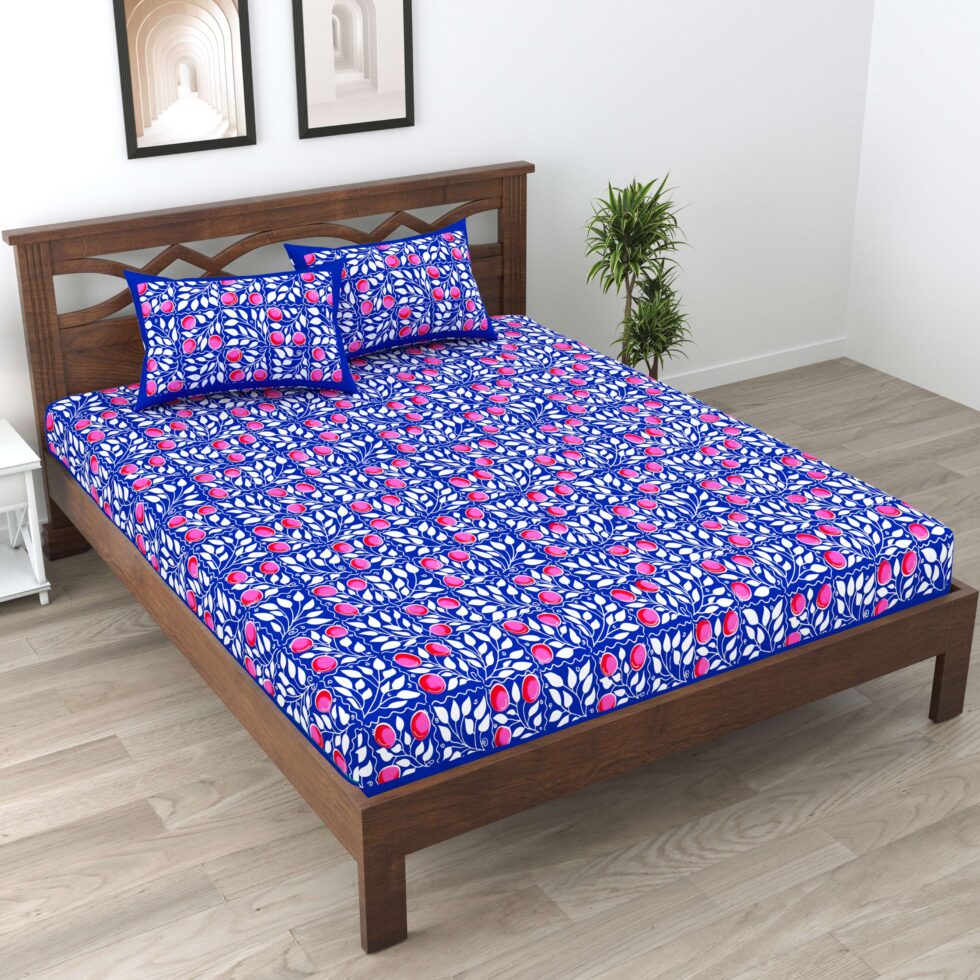 This bedsheet comes with a matching set of 2 pillow covers, completing the look and giving your bed a coordinated, elegant appearance. The soft and durable cotton fabric ensures long-lasting use, easy maintenance, and superior comfort for everyday use.