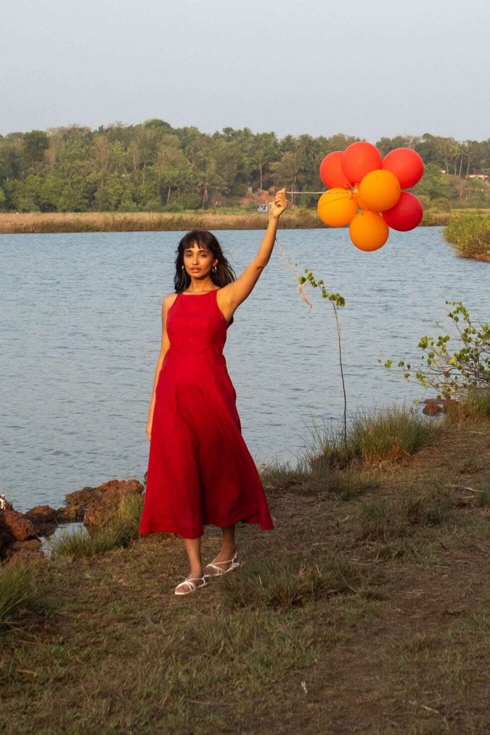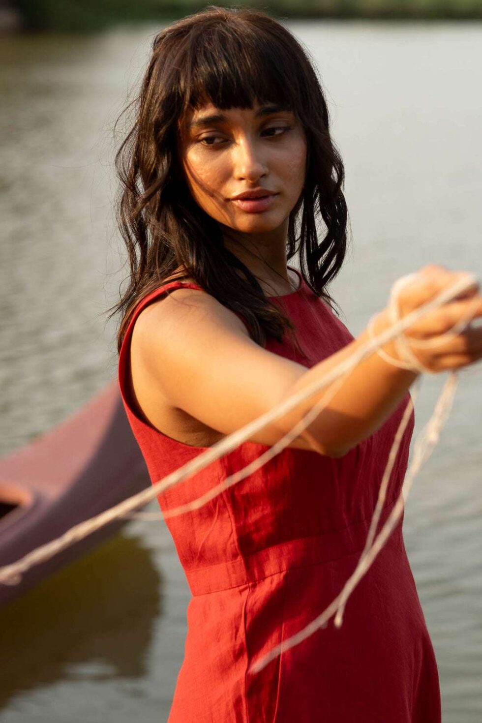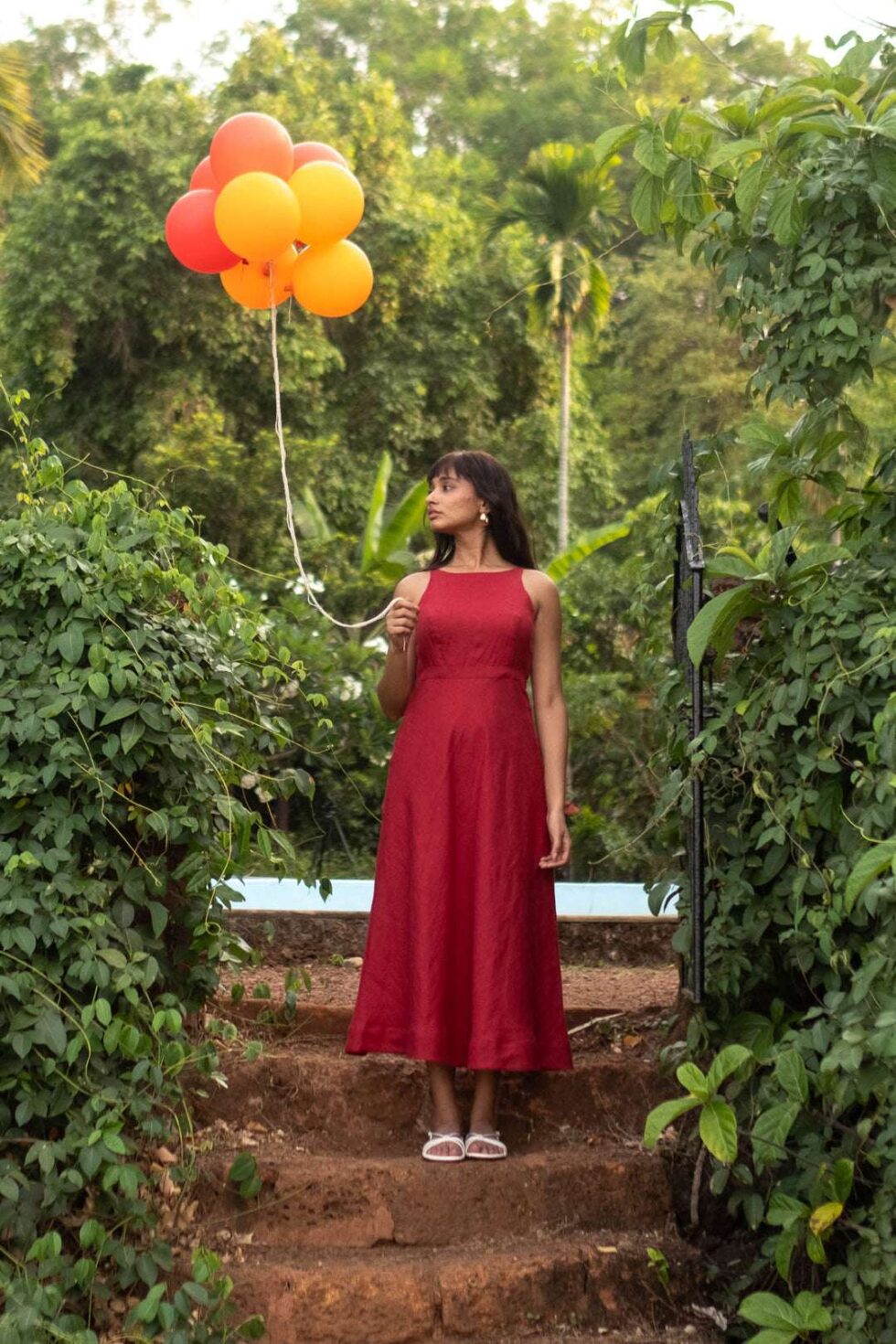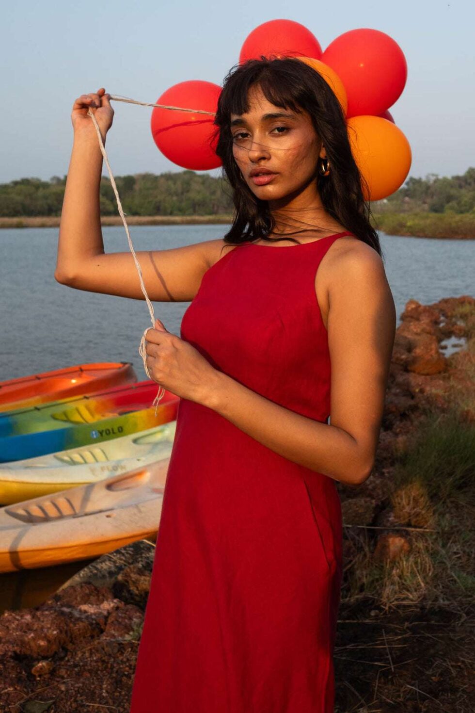 Women’s Cotton Solid Pain Sleeveless Cutaway Midi Dress Midi Dress Stylish Western One Piece Casual Dress ( Maroon )