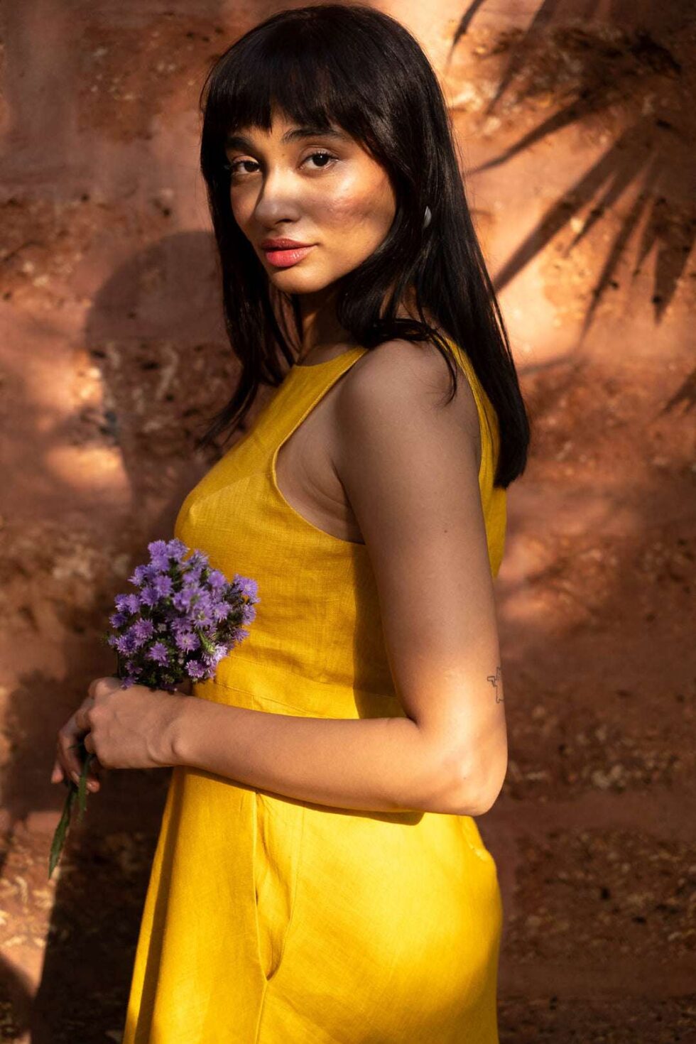 Women’s Cotton Solid Pain Sleeveless Cutaway Midi Dress Midi Dress Stylish Western One Piece Casual Dress ( Yellow )