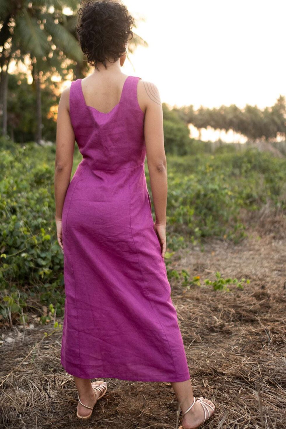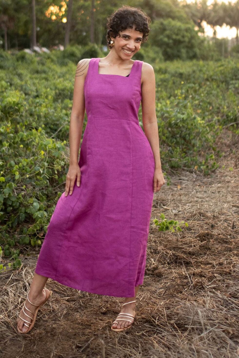 Women’s Cotton Solid Pain Sleeveless Midi Dress Stylish Western One Piece Casual Empire Dress ( Purple )