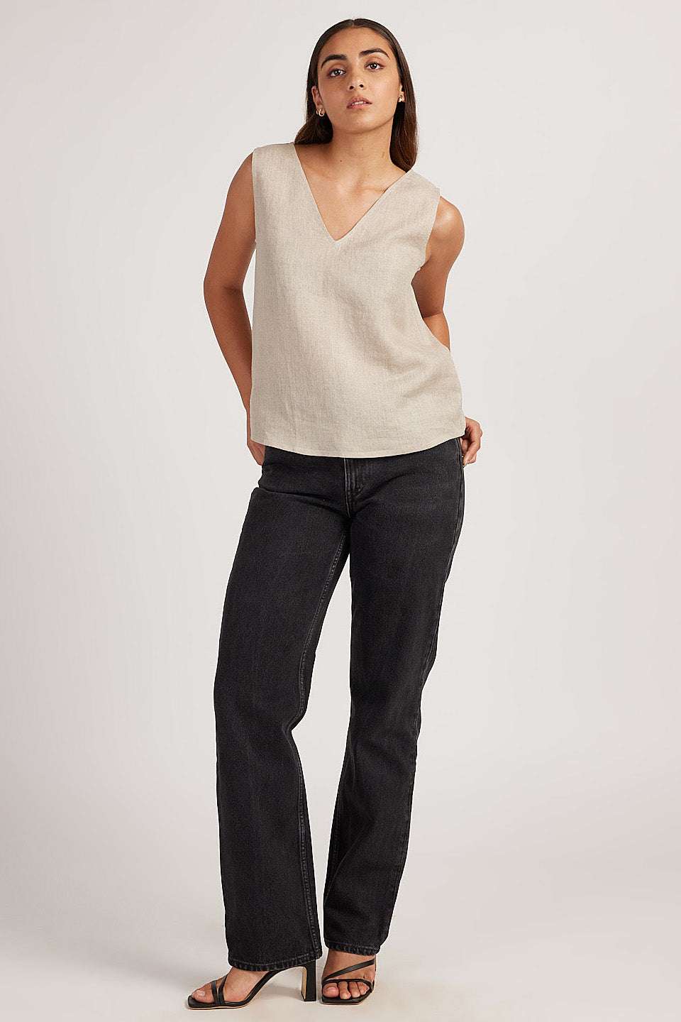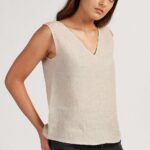 Women’s Cotton Solid V Neck Sleeveless 2 Piece Outfit Loose Tank Top and Wide Leg Palazzo Pants Sets cord set ( Beige )