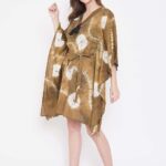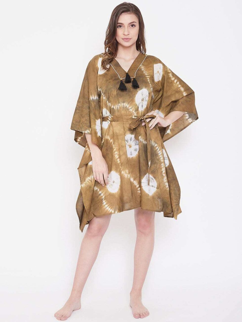 Women’s Cotton Tie Dye Print Knee Length Kaftan Drees Beach Cover Up, Spring Casual Wear ( Brown )