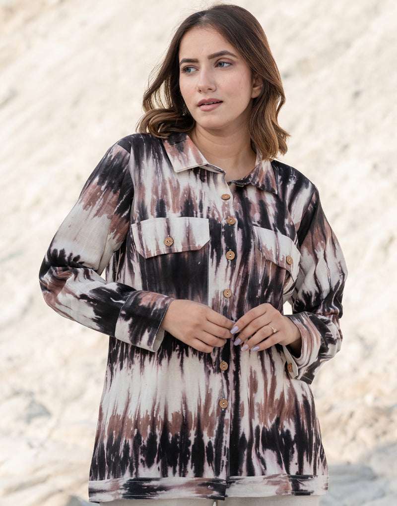 Women’s Cotton Tie-Dye Print Straight Shirt With Pant Casual Summer Collection Cord Set ( Multi2 )