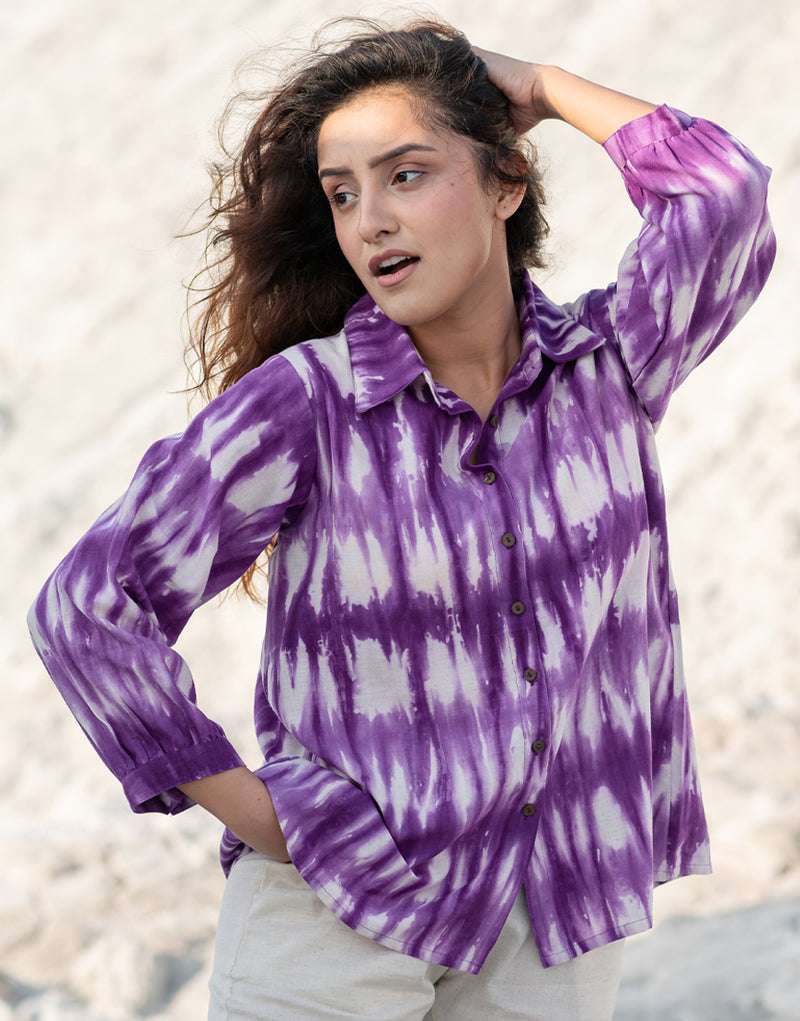 Women’s Cotton Tie-Dye Print Straight Shirt With Pant Casual Summer Collection Cord Set ( Multi3 )