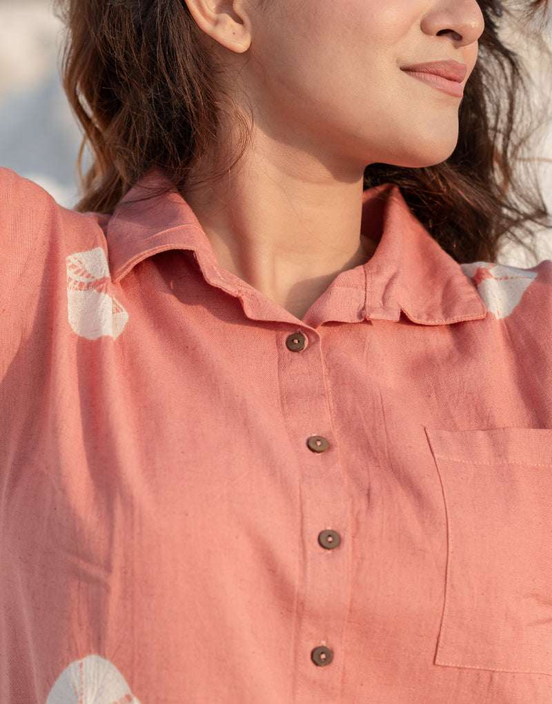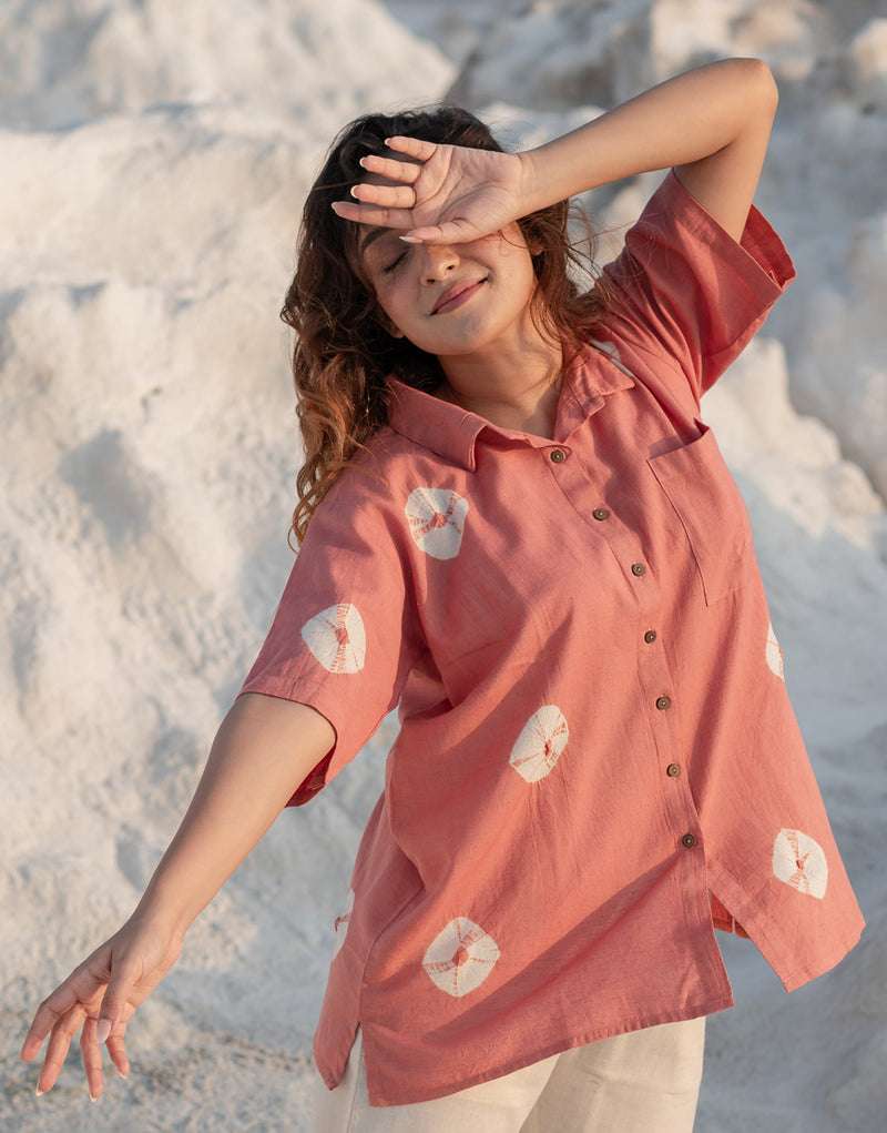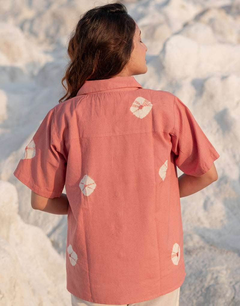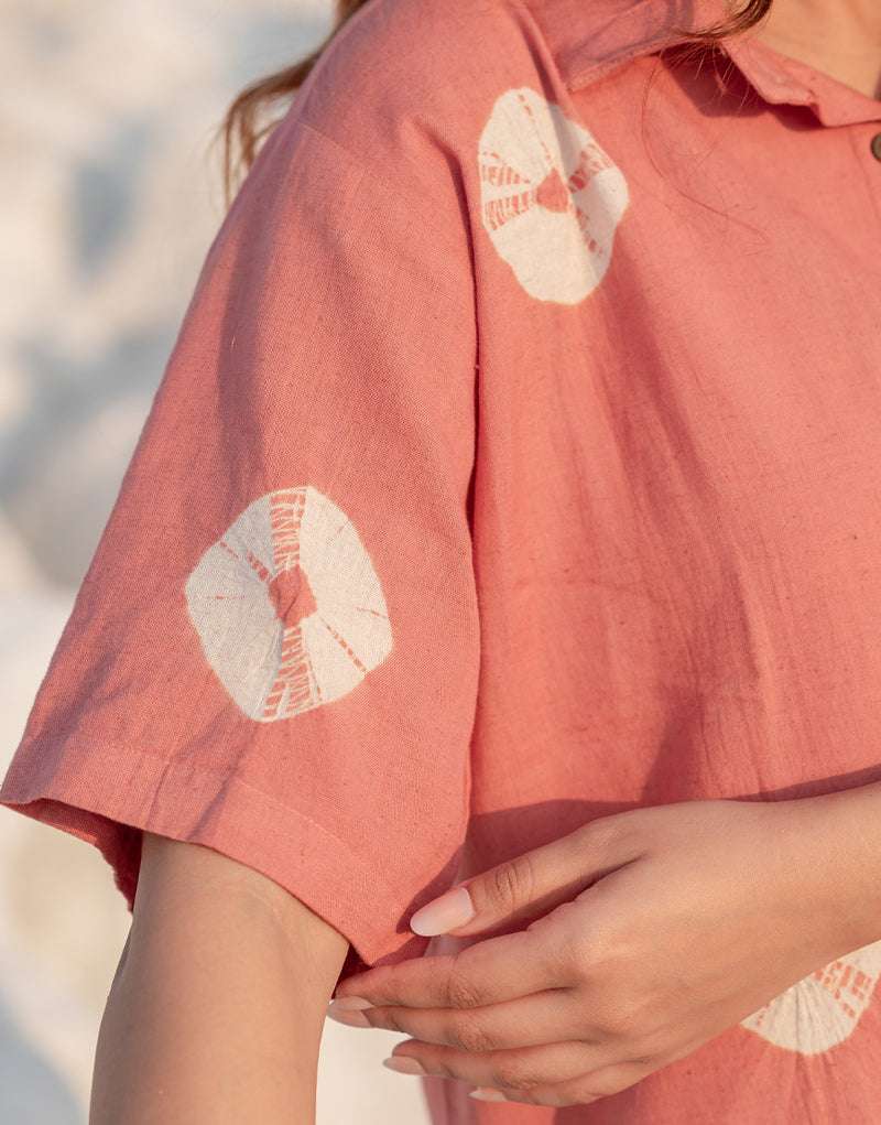 Women’s Cotton Tie-Dye Print Straight Shirt With Wide Leg Palazzo Pant Casual Summer Collection Cord Set ( Gulaabi )