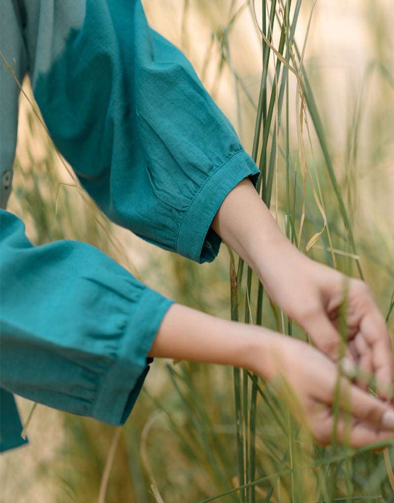 Women’s Cotton Tie-Dye Print Straight Shirt With Wide Leg Palazzo Pant Casual Summer Collection Cord Set ( Turquoise )