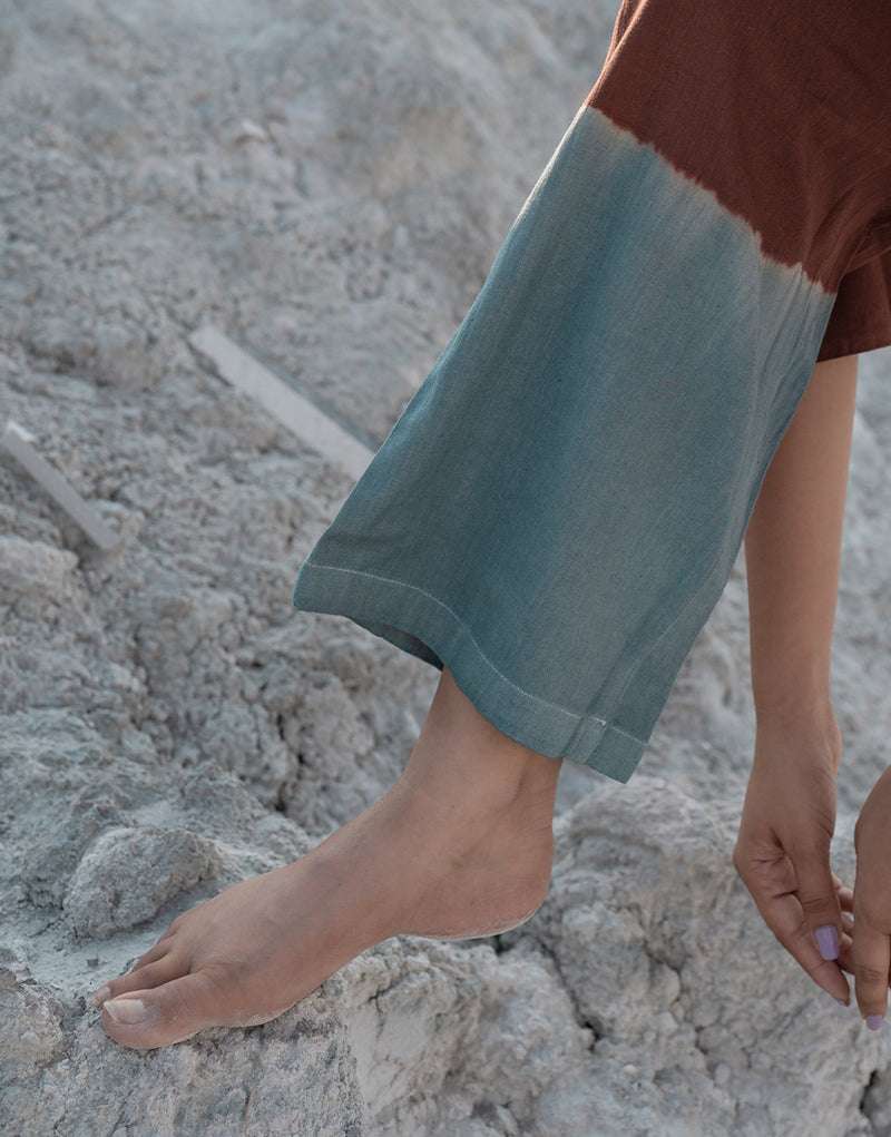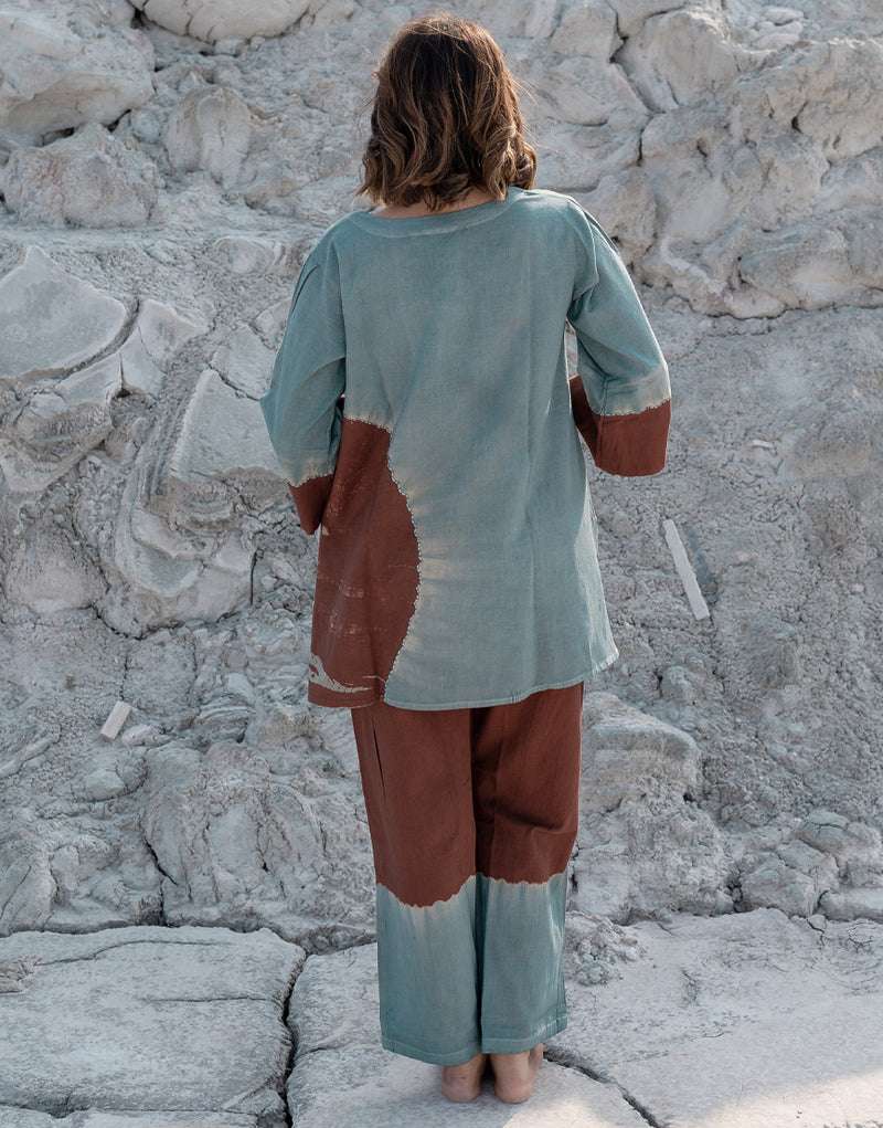 Women’s Cotton Tie Dye Print Two-Piece Lounge Set Button-Down Tunic with Palazzo Pants Resort Wear ( Danim Brown )