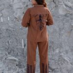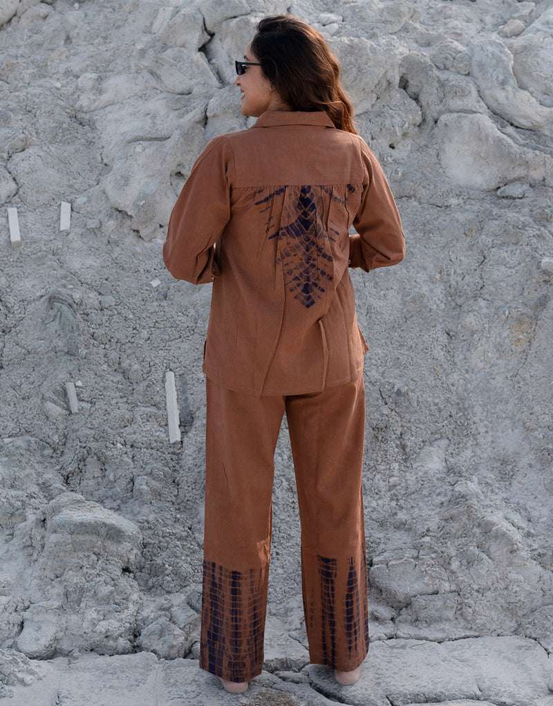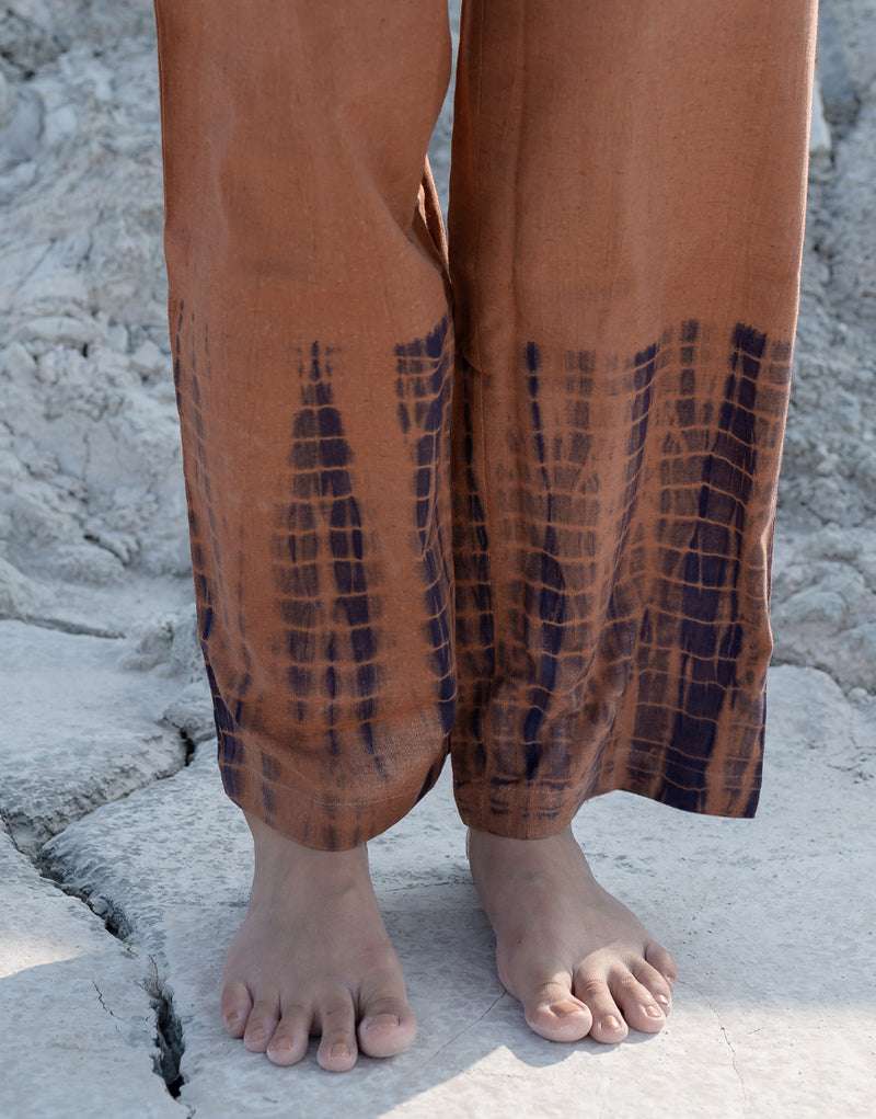 Women’s Cotton Tie Dye Print Two-Piece Lounge Set Tunic with Wide-Leg Pants, Resort Wear ( Brown Black )