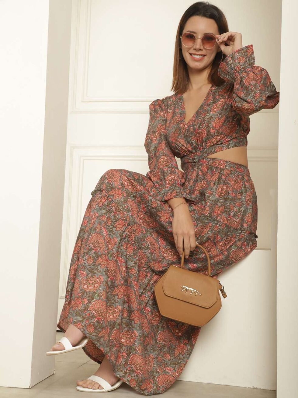 Women’s Silk Maxi Dress, designed with a stunning floral print and graceful long sleeves. The deep V-neckline adds a sophisticated touch, while the flowing silk fabric offers luxurious comfort. Perfect for evening events, parties, weddings, and other special occasions, this dress blends timeless beauty with modern charm.