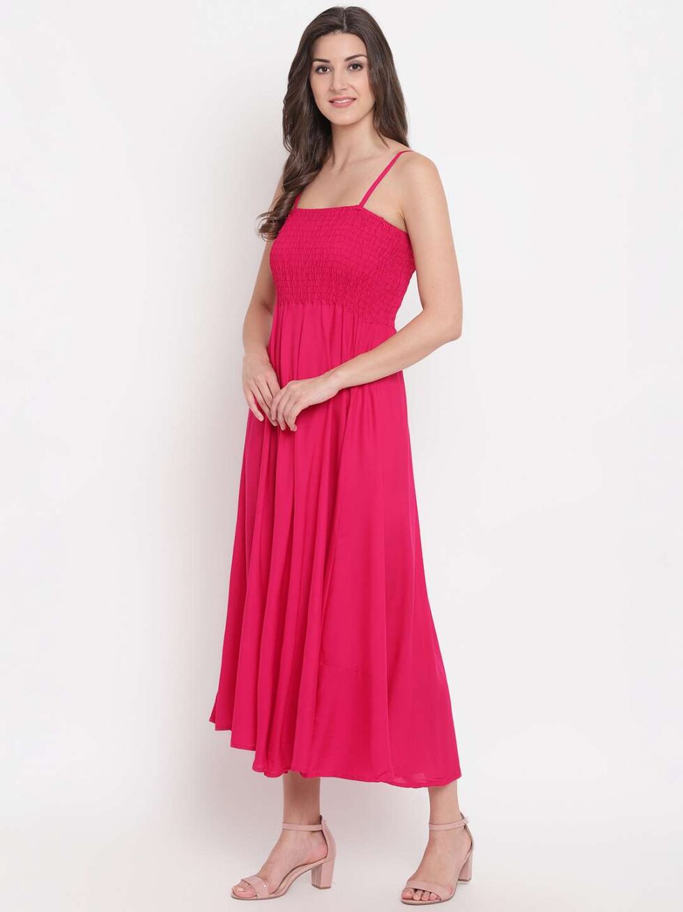 Women’s Viscose Rayon Sleeveless Flared Gown Dress in a timeless cream shade. Made from soft and flowy viscose rayon, this gown features adjustable shoulder straps, a flattering sleeveless design, and a beautifully flared hem that moves with grace. Whether you’re attending a daytime function, brunch, or an evening out, this dress offers both comfort and charm with minimal effort.